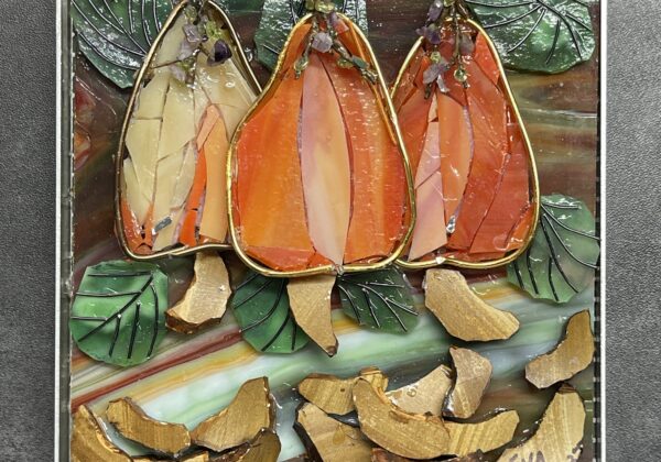 Tropical Gems: Fruits and Nuts 2025 6″ x 6″ stained glass, stones, wires, twigs, and ceramics $389 My name is Eva Díaz, born and raised on a tropical island, Puerto Rico. I enjoy the challenge of capturing and creating...