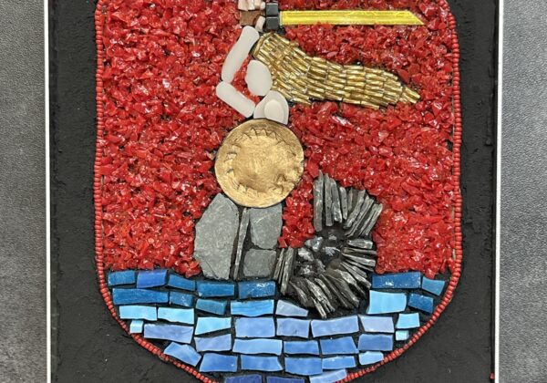 Syrena – Warsaw Mermaid 2025 6″ x 6″ glass beads, stained glass, sheet lead, gold leaf, slate, snowflake obsidian stone, smalti, crushed vintage glass vitrolite tile NFS This piece represents to me my love for the iconic symbol of...
